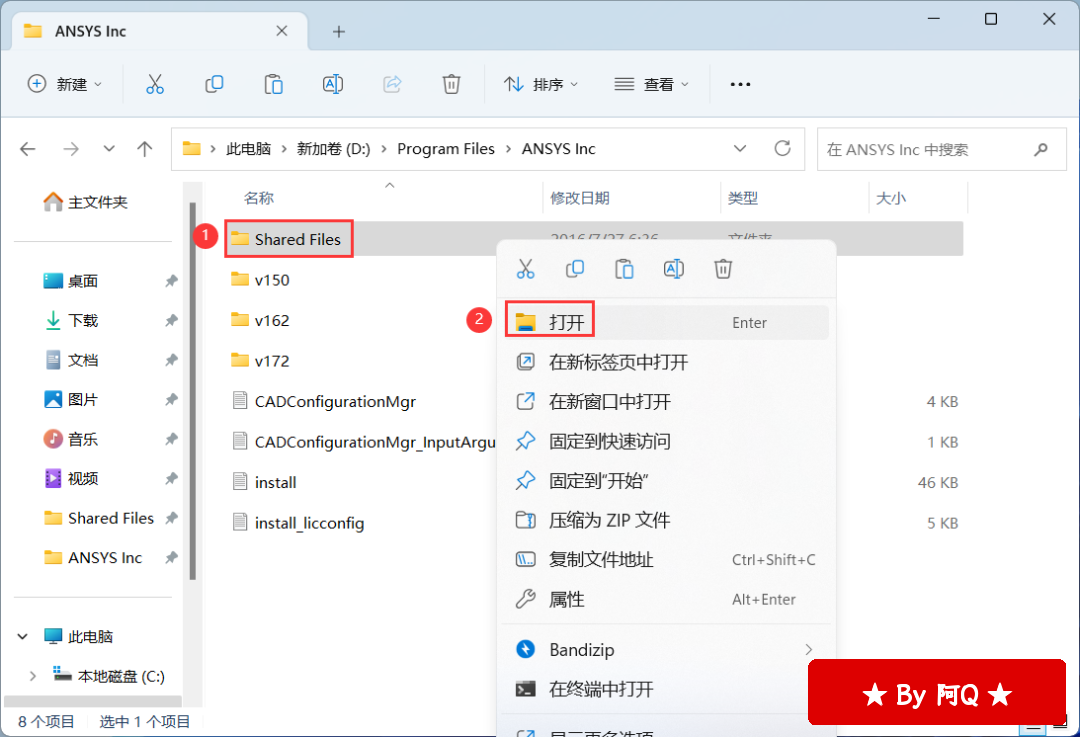16、回到ANSYS 17.2文件夹,选中【Shared Files】文件夹,右键点击【复制按钮】