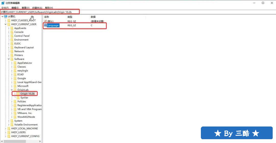 - 定位到 OriginLab 的注册表路径: