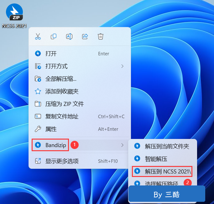1、下载NCSS 2021软件安装包到电脑上,右键选择【解压到NCSS 2021\】