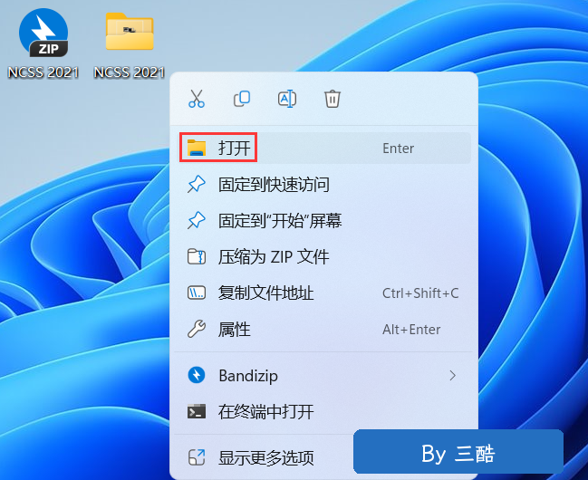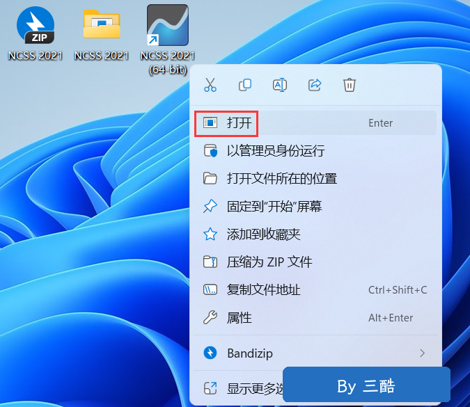 11、回到桌面,右键桌面上的【NCSS 2021软件图标】,点击【打开】