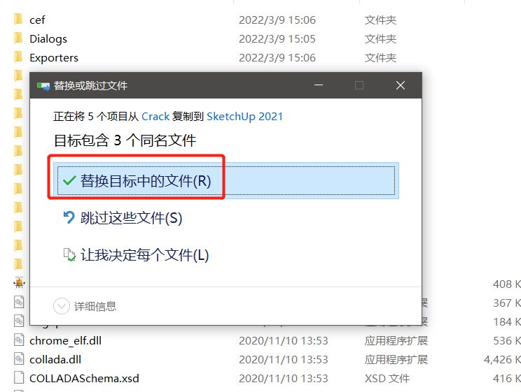 9.将刚刚复制的文件粘贴到软件安装路径下(第4步设置的路径),点击“替换目标中的文件”