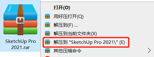 1.鼠标右键解压到“SketchUp Pro 2021”