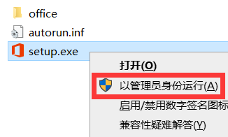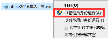 7.选中office2016激活工具,鼠标右键点击“以管理员身份运行”(温馨提示:若打开没有注册机,说明被电脑杀毒软件隔离了,关闭杀毒软件重新解压即可。)